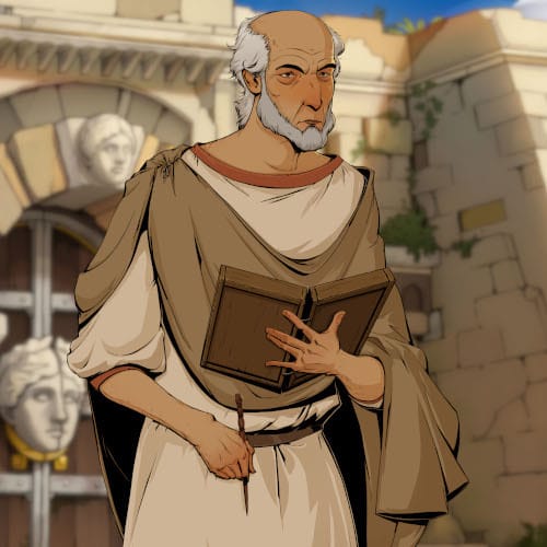 As an haruspex, Arnth studies the entrails of animals to interpret the will of the gods. His design is based on the museal reconstruction of an Etruscan man that lived in ancient Rusellae 😄